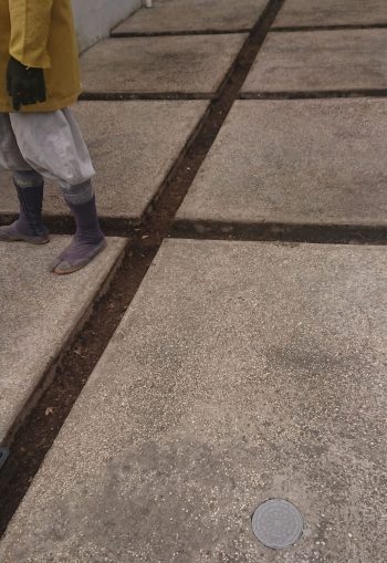 外構工事、エクステリア、造園工事に対応しています鳶中嶋です。今回は、駐車場のコンクリートのスリットをコンクリートで埋める工事です。