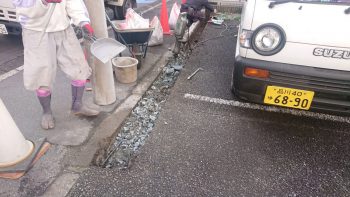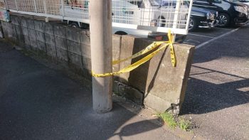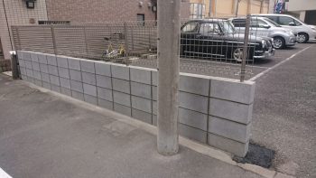 外構工事、エクステリア、造園工事に対応しています鳶中嶋です。今回は、駐車場の入り口ブロック塀の積み直しです。既存のブロックに車が接触して壊れてしまいました。