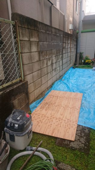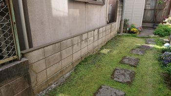 外構工事、エクステリア、造園工事に対応しています鳶中嶋です。今回は、ブロック塀の切り下げ工事です。