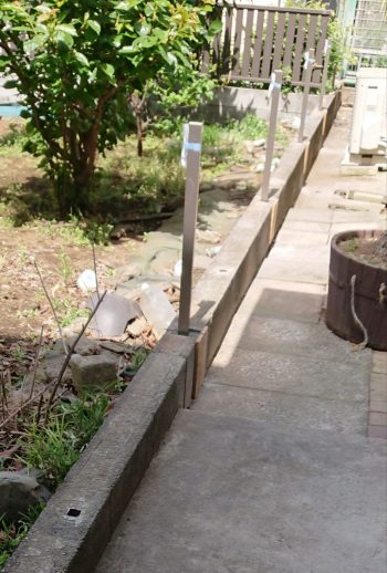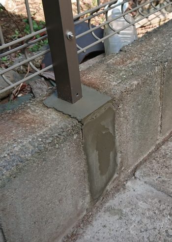 既存のフェンスをブロックの面でカットしモルタルで補修します。新しい柱をブロックをカットし立ててフェンスを付けて完成です。